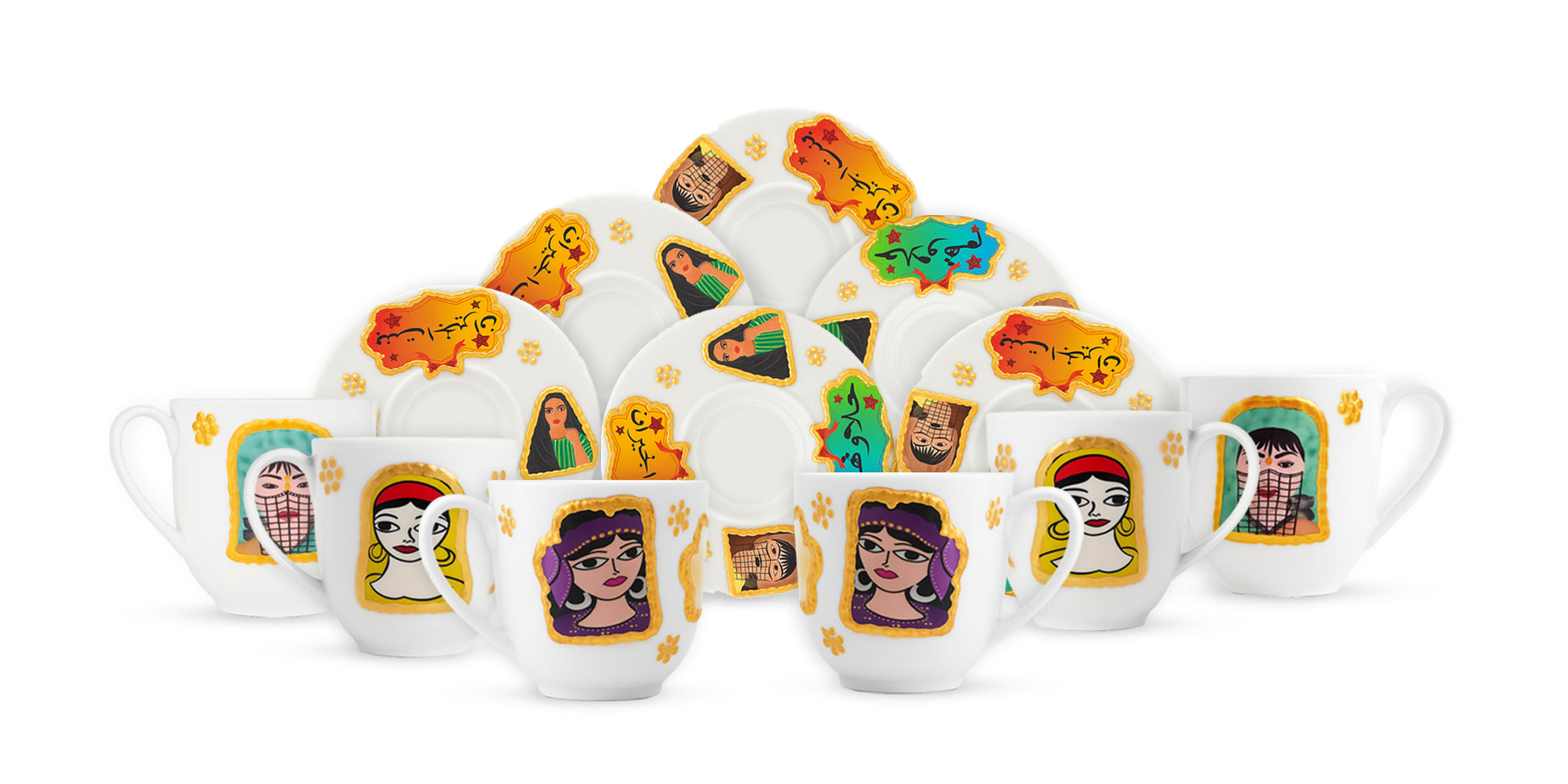 طقم قهوه بورسلين مع الطبق أشكال بنات كيداهم وحلاوتهم