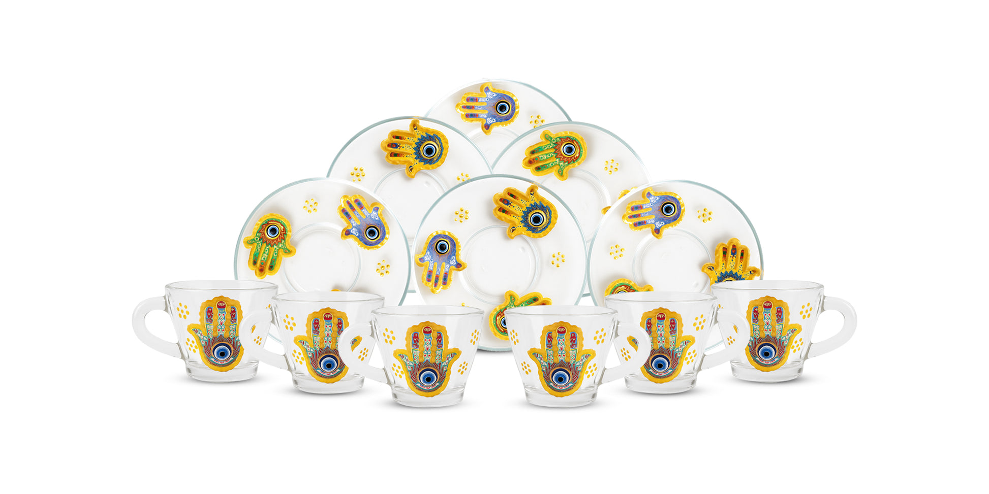 ٦ أكواب شاي خمسه وخميسه مع الطبق
